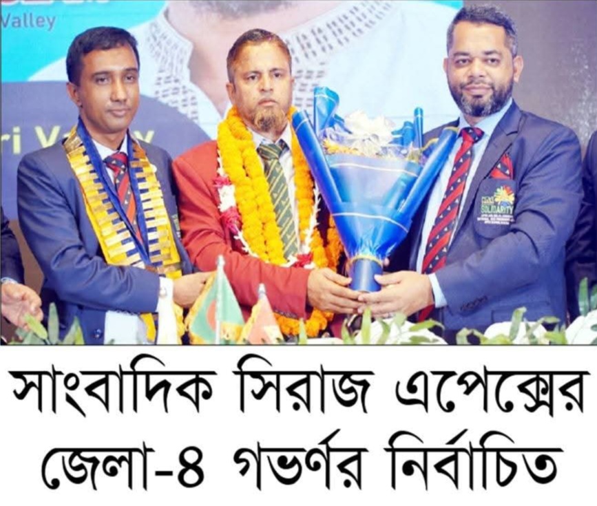 সিলেট অলটাইম নিউজ :আন্তর্জাতিক স্বেচ্ছাসেবী সংগঠন এপেক্স বাংলাদেশের ২০২৬ বর্ষের জেলা-৪ এর গভর্ণর পদে বিনা প্রতিদ্বন্দ্বিতায় নির্বাচিত হয়েছেন জুড়ী উপজেলা প্রেসক্লাব সভাপতি ও এপেক্স ক্লাব অব জুড়ী ভ্যালীর অতিত সভাপতি সাংবাদিক এপেক্সিয়ান সিরাজুল ইসলাম।